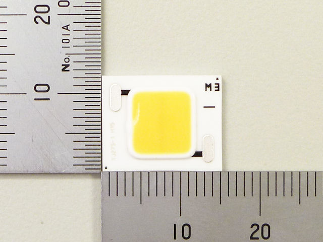■シャープ照明用ハイパワーLED「銭形シリーズ」 ■スポットライトや電球型ランプに適した銭形タイプ ■青色LED+蛍光体による高演色性 ・60個のLEDを内蔵(内部6直10パラ構造)