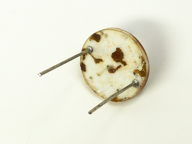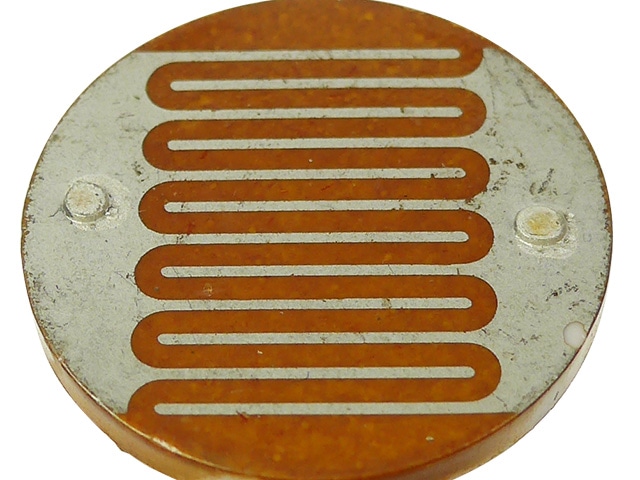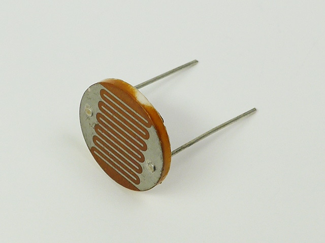 CdS(硫化カドミウム)を使用した光センサーです。光の強さに応じて電気抵抗が変化します。人の目の特性に近い特性(緑色の光に対して高感度)を持つため、各種明るさセンサーに最適です。※硫化カドミウム(深い橙色)が部品側面や裏面に付着している場合がありますが、製造工程上避けられないもので、製品性能に影響はありません。