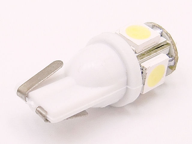 T10型 ウェッジ球タイプの12Vルームランプです。12V5W程度の豆電球の明るさに相当します。 ■点灯しない場合は向きを逆につけてみてください。