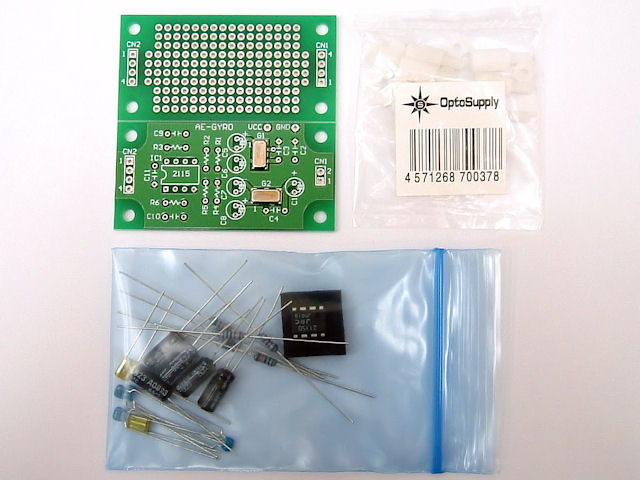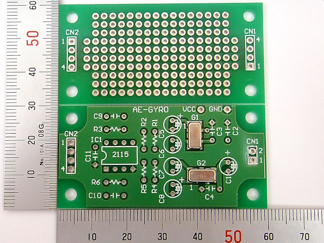 村田製作所の圧電振動ジャイロ(ジャイロスター)を使った2軸ジャイロのキットです。1軸のENC-03Rを2個使ってX・Yの2軸構成にしています。NJM2115も搭載しており、アンプ及び高域カットフィルタとして機能します。ロボット・手ブレ検出・動き検出に最適です。センサ基板は30x60mmで、同じサイズの蛇の目基板も付属します。