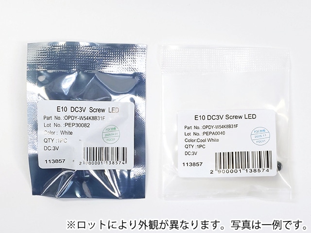 E10ソケットに対応した豆球型LEDです。電流制限抵抗が内蔵されており、3Vに直接接続できます。