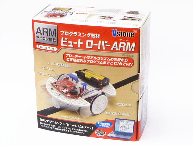 ビュートローバーARMは、ARMマイコン「LPC1343」を搭載したプログラミング学習用ロボットです。赤外線センサによる障害物検知、ライントレース、赤外線ボール追跡が可能。LEDやブザーによる表現も豊かに行えます。専用ソフトウェア「ビュートビルダー2」またはC言語によるプログラミング学習に対応。ユニバーサルプレート状のメインフレームにより改造も容易です。ロボットのプログラム学習に最適なCPUボード「VS-WRC103LV」搭載。