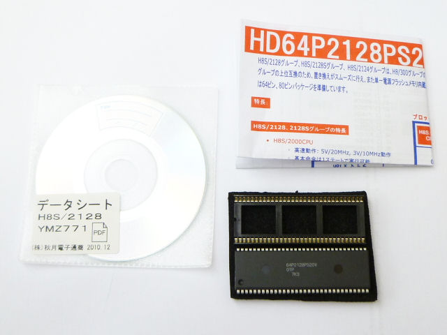 H8Sファミリの16ビットマイコン。16本の汎用レジスタで構成され、レジスタ間演算の基本命令は1クロックで動作。Dhrystoneベンチマーク性能は33MHz動作時に18.9MIPS。16ビット、4クロック実行の乗算器内蔵。積和演算命令でデジタル信号処理も高速実行可能。最大16Mバイトのメモリ空間を利用可能。外部ROMモード動作にも対応し、外付けフラッシュROMに格納されたプログラムを実行可能。パック内容:HD64P2128PS20Vx1個、対応ICソケットx1、データCDx1枚