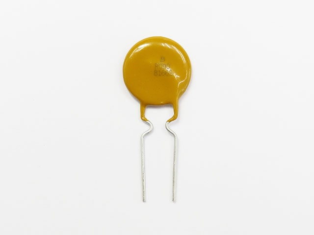 導電性ポリマーを使用した自己復帰型のヒューズです。過電流時には発熱により導電性が低下し電流を遮断します。原因除去後に冷却されると復帰します。