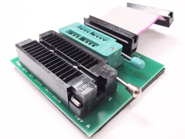 TechTools製の18ピン/28ピンDIPパッケージ用書き込みアダプターです。ライター本体は別売り。アダプタ基板(専用ソケット)部分のみの販売。裏面のスポンジが劣化している場合があります。