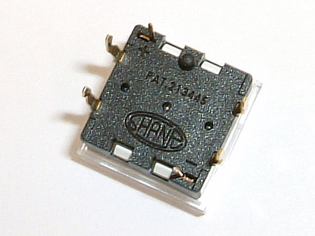 LED付きの基板用押しボタンスイッチです。正方形タイプで、キートップは取り外し可能でラベルなどを入れられます。内蔵LEDが発光すると赤色になり、5mA程度の電流でも十分に目立ちます。