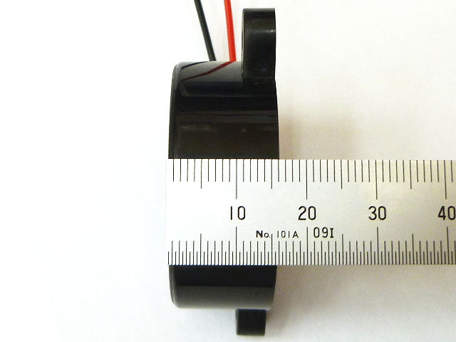 電源に接続するだけで、盗難防止装置のような大音響(ピッ・ピッ)を発するブザーです。非常に大きな音が出るため、最初にテープなどで本体中央の穴を塞いで音量を確認することを推奨します。