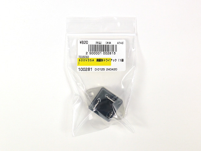 600V35A大容量トライアック。放熱器にネジ止めできるようになっていて放熱部分は絶縁されていますので使いやすい。◎応用例:モーターコントロール、調光、複写機・エアコンの制御など