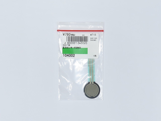 FSR402は高分子厚膜フィルム(PTF)デバイスの一種です。センサー部に圧力を加えると抵抗値が減少し、リニアなアナログ出力を得られます。センサー部裏面には両面テープが付いており、剥離紙を剥がすだけで基板等に貼り付け可能です。