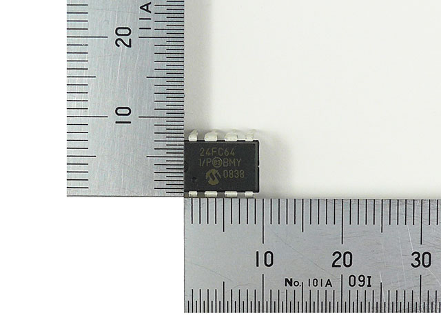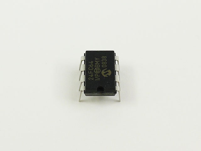 マイクロチップ製のI2CシリアルEEPROMです。64kビットのメモリ容量を持ち、DIP8パッケージで提供されます。