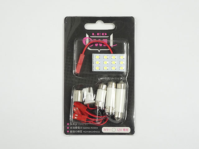 車用のルームランプセットです。 3x4=12個のチップ白色LEDが明るく光ります。 変換アダプタ(31mm,37mm,42mm他)も付いています。 ■発光色=白色 12V車用 LED部分は裏に両面テープがついています ■赤・黒の配線が出ていますから、車に限定しなくても他の用途でも使えそうです。 ◆内容物 ・ルームランプ本体 ・31m用アダプター ・37mm用アダプター ・42mm用アダプター ・T10用アダプター