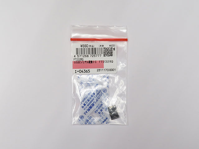 FTDIのUSB-232変換チップです。 QFNパッケージですので、小型機器への組み込みに最適です。 ◆USB2.0 ◆VCP(Virtual Com Port)対応 ◆BBM(Bit Bang Mode)対応 ◆クロック内蔵で外部クリスタルが不要 ◆300ボー~3Mボー対応 ◆128バイト受信バッファ、256バイト送信バッファ ◆QFN32ピン (Quad flat no lead package)