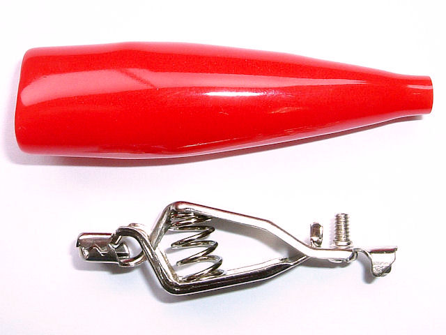 中型のワニ口クリップです。バッテリー充電などに適しています。