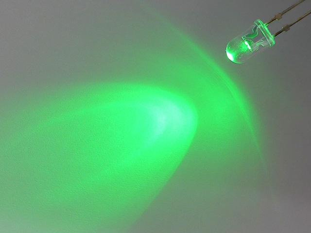 豊田合成の高輝度緑色発光ダイオードです。波長525nmのピュアグリーンです。15mAの定電流ダイオードが1本付いたセット商品です。定電流ダイオードは加える電圧に関係なく一定の電流を流しますので初心者の方でも安心してご使用いただけます。